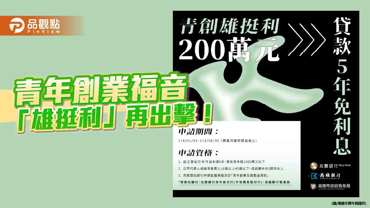 減緩青創貸款利息壓力 高市青年局再推「雄挺利」