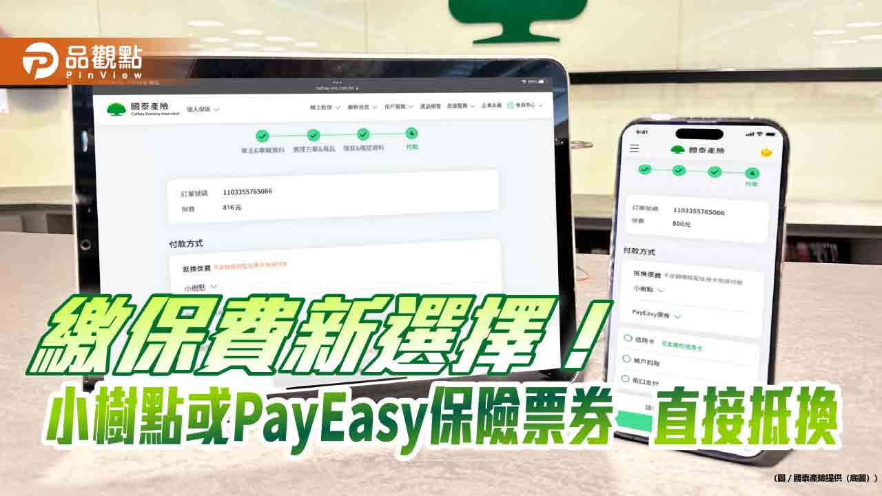 國泰金控旗下國泰產險攜手神坊資訊(小樹生活)、康迅數位(PayEasy),推出業界首創「點數或電子票券抵換保費」新型態服務模式,客戶於國泰產險官網投保車險或旅遊險時,可使用「小樹點」或「PayEasy保險票券」抵換保費且無上限,多一個繳費選擇。