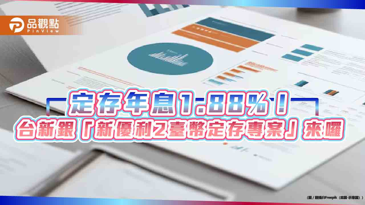 新台幣優利定存來囉!台新銀行最新推出「新優利2臺幣定存專案」,即日起至12月31日止,客戶以「新資金」存入台新銀行,可享12個月定存年息1.88%優惠利率,此專案為限時、限量優惠活動,有需求的民眾可得把握時間。