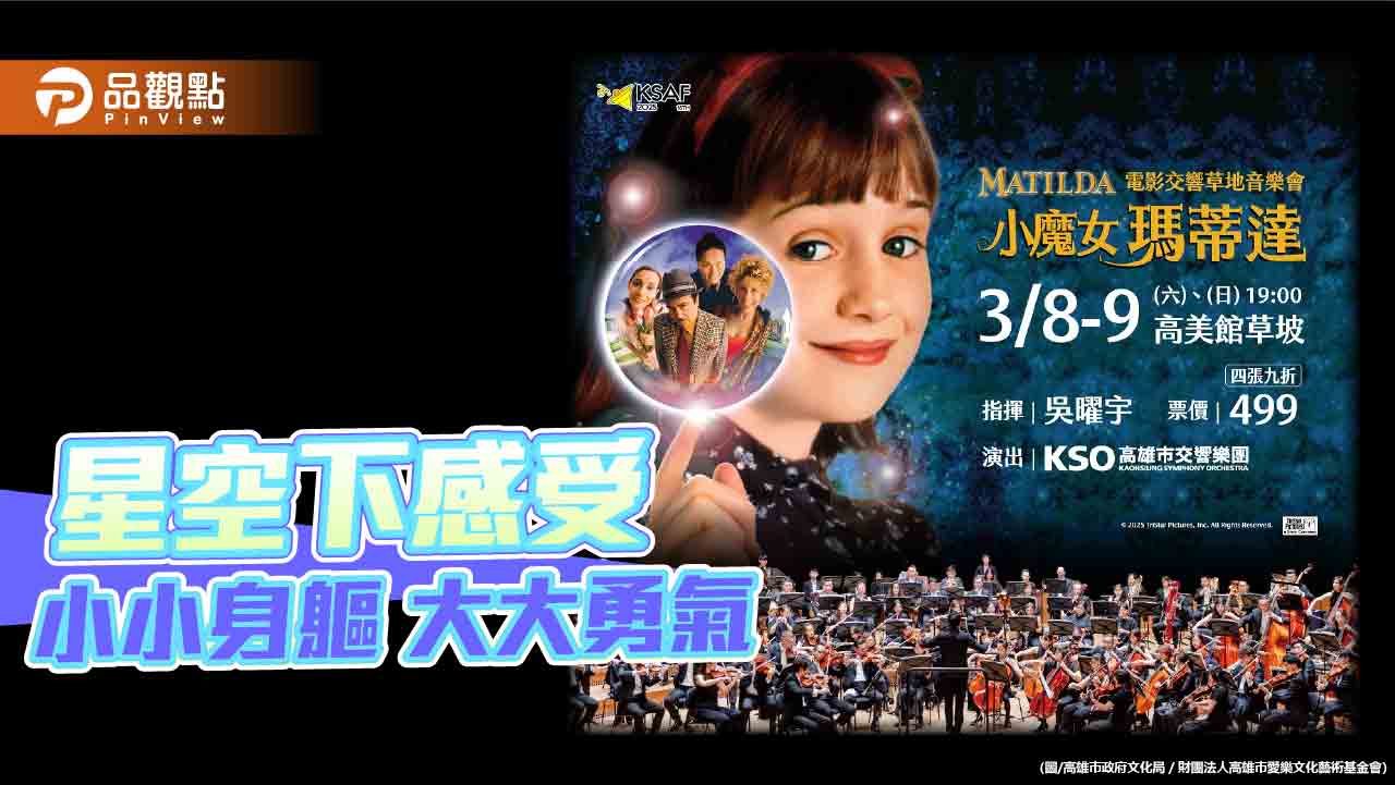 高美館草地音樂會將在3月8日與9日帶領觀眾在音樂與光影交織下,感受《小魔女-瑪蒂達》如何運用知識與勇氣改變命運,在星空下與瑪蒂達一同對抗不公,迎接希望!