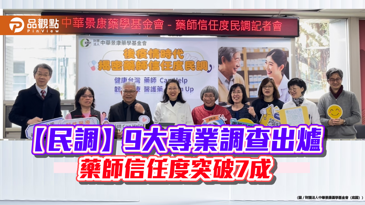 中華景康藥學基金會今(14)日發布最新民調,揭示後疫情時代藥師專業地位大幅提升,有73%民眾表示信任藥師,平均信任度達3.96分,與醫師、護理師並列前三名最受信賴的專業人士。