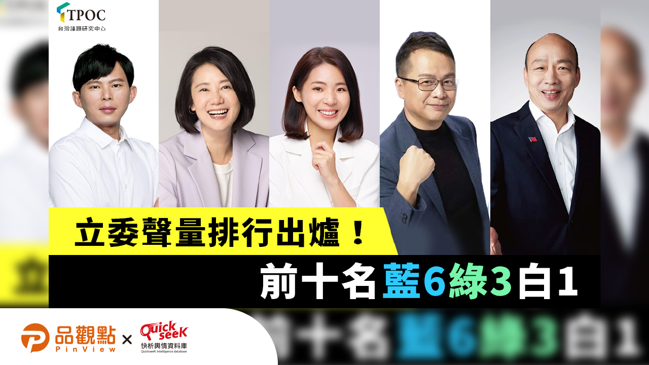 最新立委聲量排行出爐!前十名藍6綠3白1