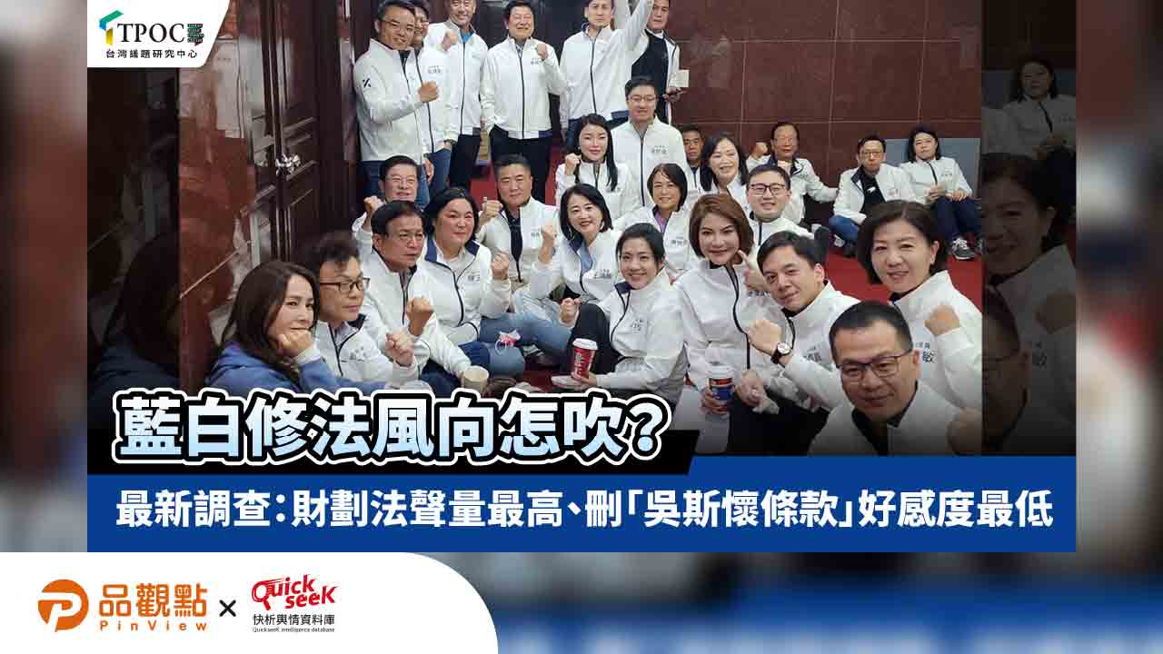 藍白修法風向怎吹?最新調查:財劃法聲量最高、刪「吳斯懷條款」好感度最低