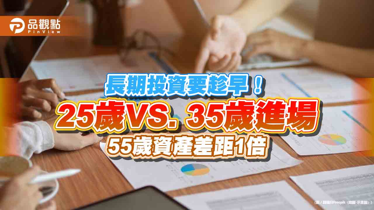 長期定時定額投資的效果,可能遠超過你的想像。法人試算,假設每個月投資1萬元(每年12萬),報酬率5%的話,從25歲開始投資,到了55歲可以累積資產835萬元;如果35歲才開始投資,55歲只能累積412萬,差距1倍之多,顯見投資要趁早。