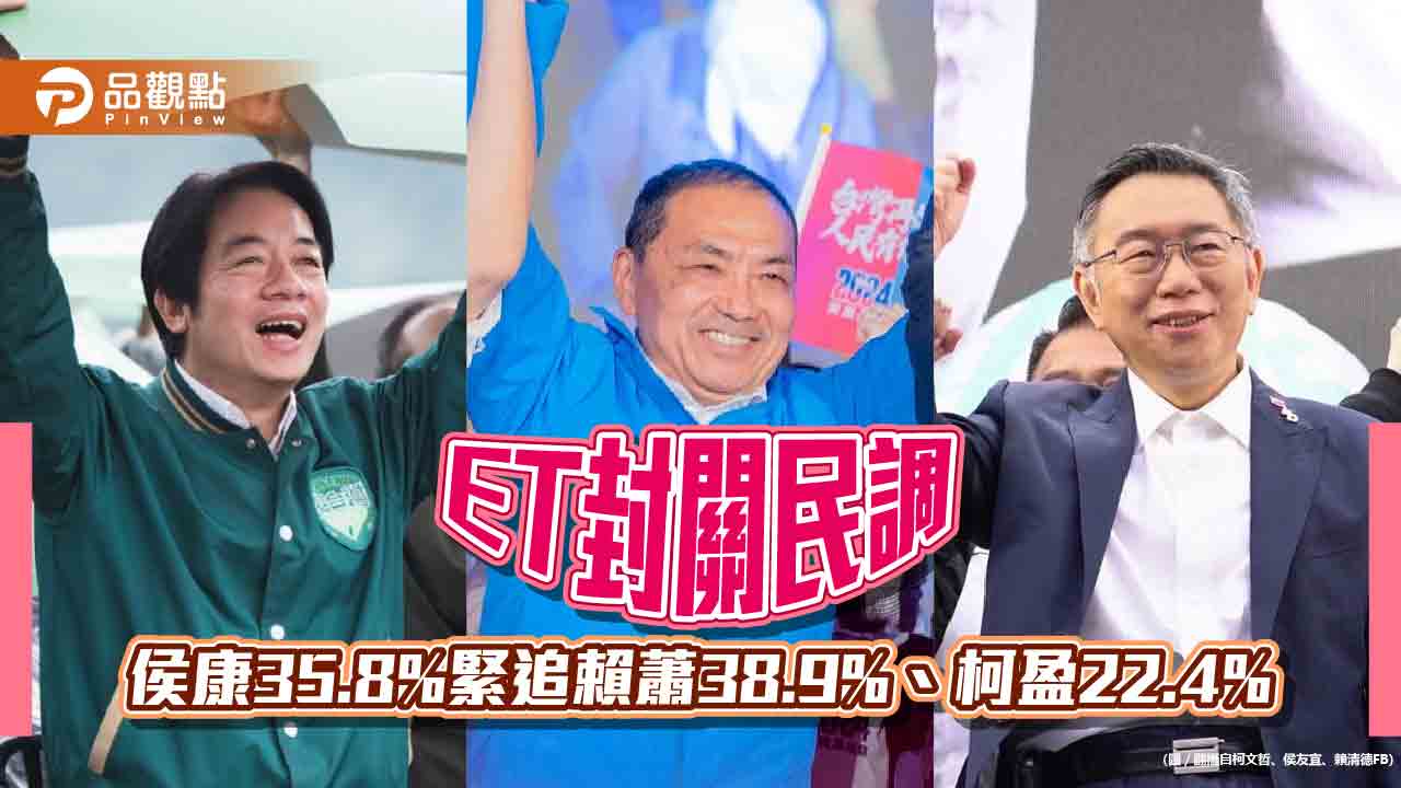 ET封關民調 侯康35.8%緊追賴蕭38.9%、柯盈22.4%