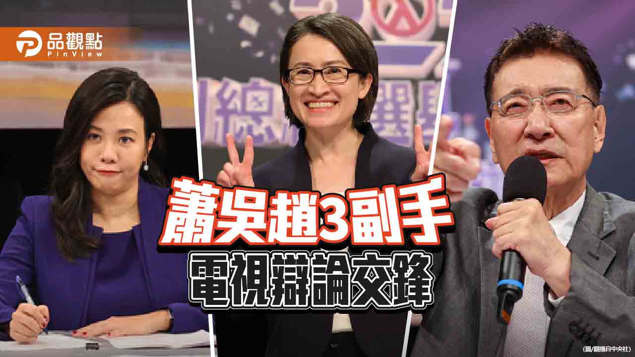 2024大選副總統候選人電視辯論會1日落幕,3黨候選人正面交鋒,國民黨趙少康拋宣布辭去中廣董事長職務,並稱當選後不支薪、仁愛路副總統官邸將用做青年住宅。趙少康言詞犀利、蕭美琴照本宣科、吳欣盈則國台英語夾雜,較無章法。