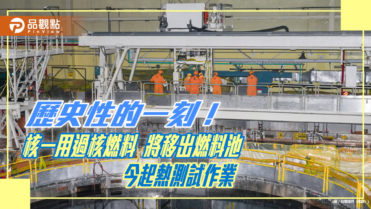 核電廠用過的核燃料,終於要移出燃料池了!由於核一廠室外乾貯設施已獲新北市府核發水保完工證明,今(23)日起,台電開始進行運貯測試(熱測試),要將用過燃料池中的燃料棒,移至乾貯設施內,規劃先執行兩筒(112束)燃料,蒐集相關數據及資料分析,後續將測試報告送核安會進行審查。