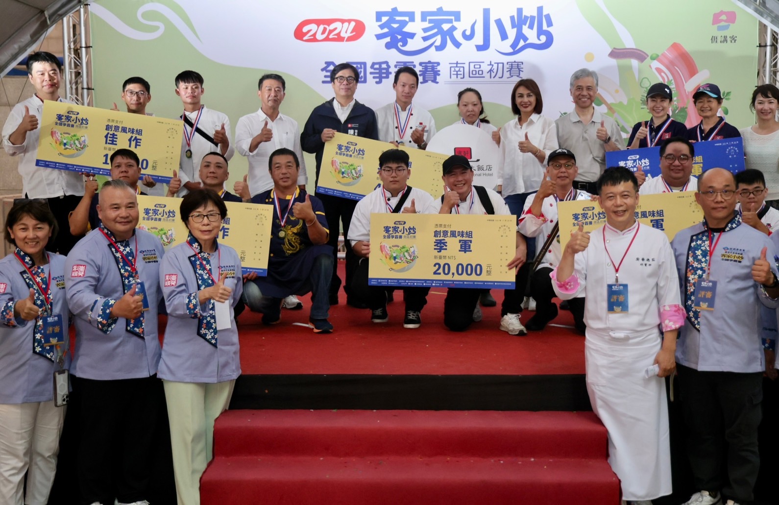 「2024客家小炒全國爭霸賽」,南區初賽於高雄巨蛋戶外廣場舉辦。珍味餐廳獲得傳統風味組冠軍,寒軒國際大飯店獲創新組冠軍。