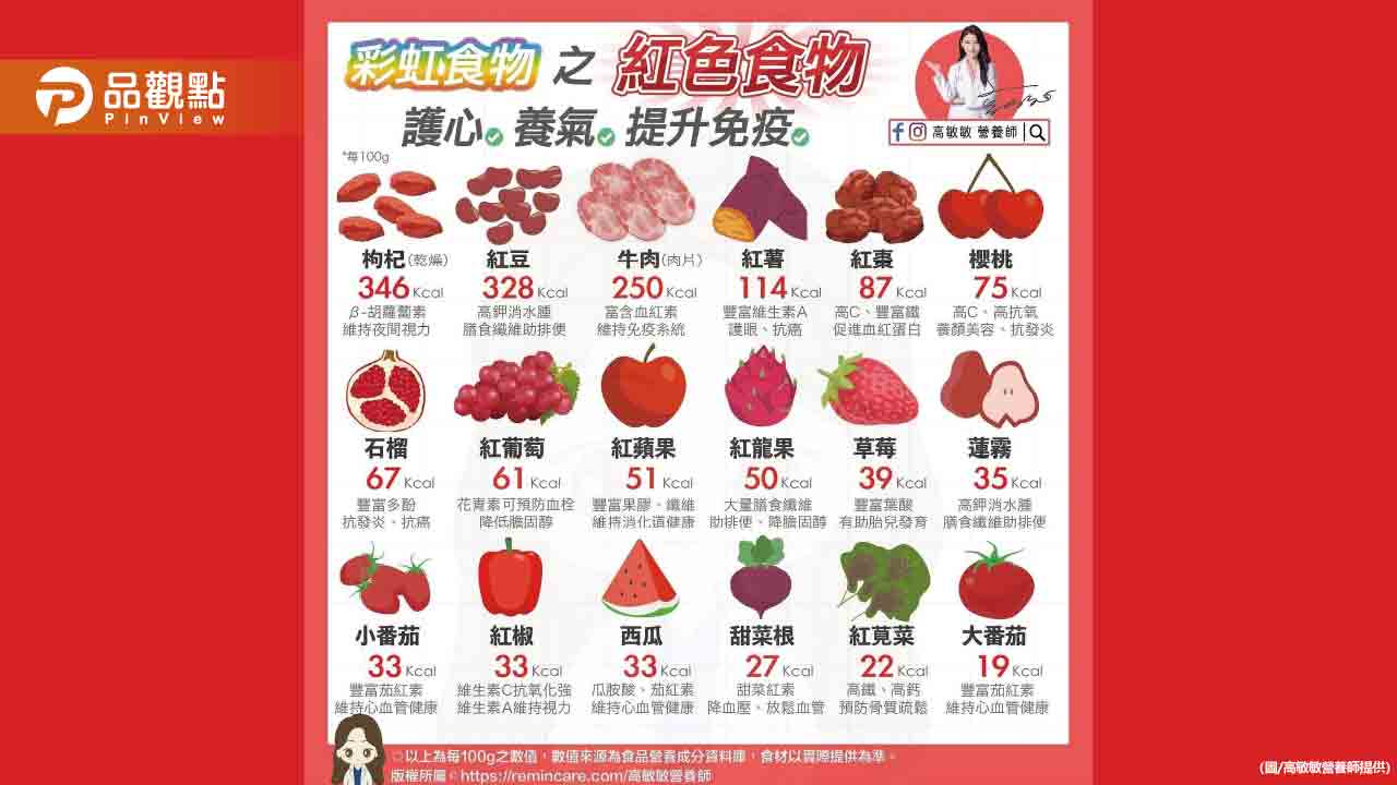 俗話說「番茄紅了 醫生的臉就綠了」,其實不只是番茄,許多紅色食物都有強大的營養價值,護心養氣提升免疫,奉上紅色食物一覽表!
