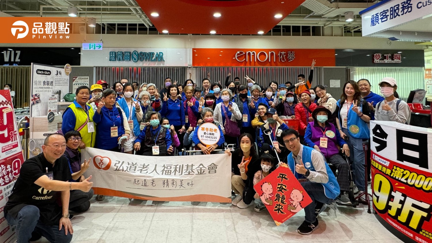 輝瑞大藥廠連續12年公益支持弘道老人福利基金會「寒冬助老,刻不容緩」關懷計畫,11日上午15位同仁及家屬陪伴35位弘道友好互動協助的社區中獨居、弱勢長輩前往大賣場辦年貨,用實際行動傳遞溫暖,讓長輩們在熱鬧的年節氣氛中,安心、開心選購自己所需的物品!
