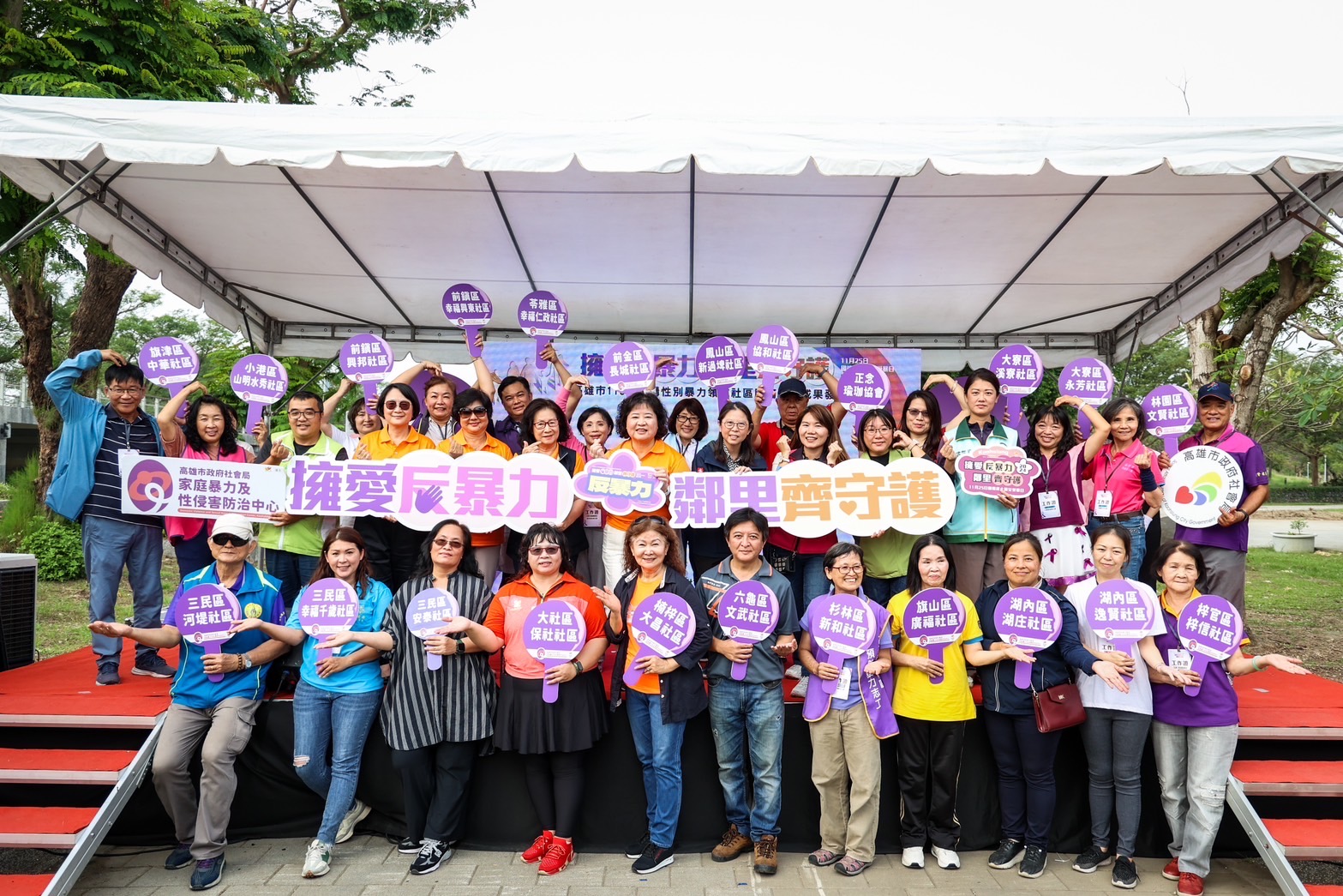 為響應「國際終止婦女受暴日」,社會局家防中心於22日在衛武營都會公園夏日大道舉辦「114年度國際終止婦女受暴日宣導暨建構性別暴力領航社區服務方案成果發表活動」。