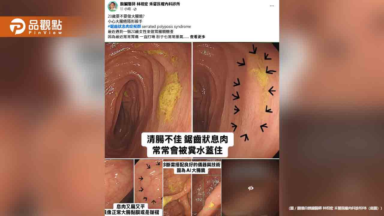 20歲女做大腸鏡!醫生嚇到:超過20顆以上「鋸齒狀息肉」