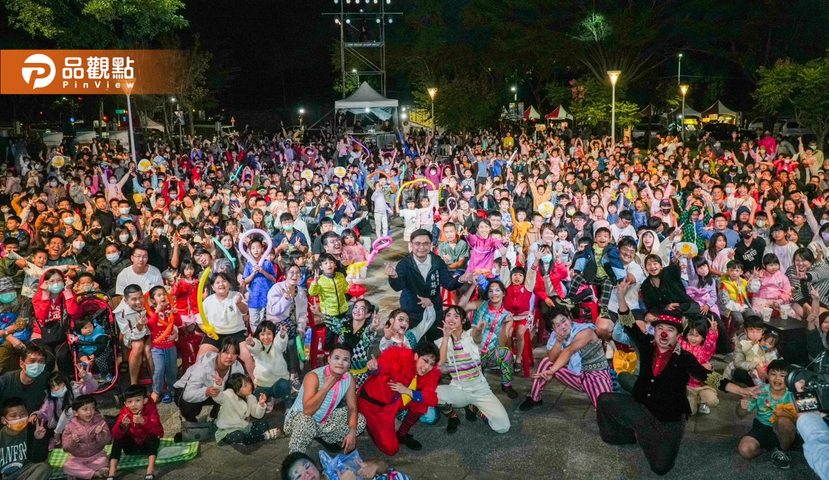立委賴瑞隆7日晚間在岡山河堤公園舉辦「小鴨爸爸的馬戲派對」,邀請到福爾摩沙馬戲團(FOCA)演出《潘朵拉的盒子》,吸引超過千位大小朋友參加。