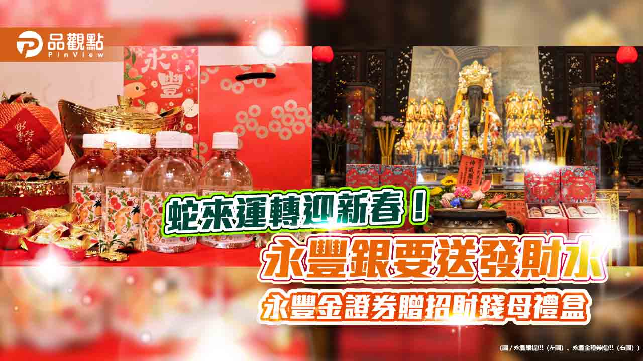 為迎接蛇年新春好兆頭,永豐銀行今年特別為客戶推出開運「蛇年四寶」,包括發財水、春聯與聚寶袋;永豐金證券則是首度聯名北港武德宮推出招財錢母禮盒,將於永豐金證券各分公司限量提供,感恩客戶支持,祈求客戶新的一年投資順利、財源廣進。