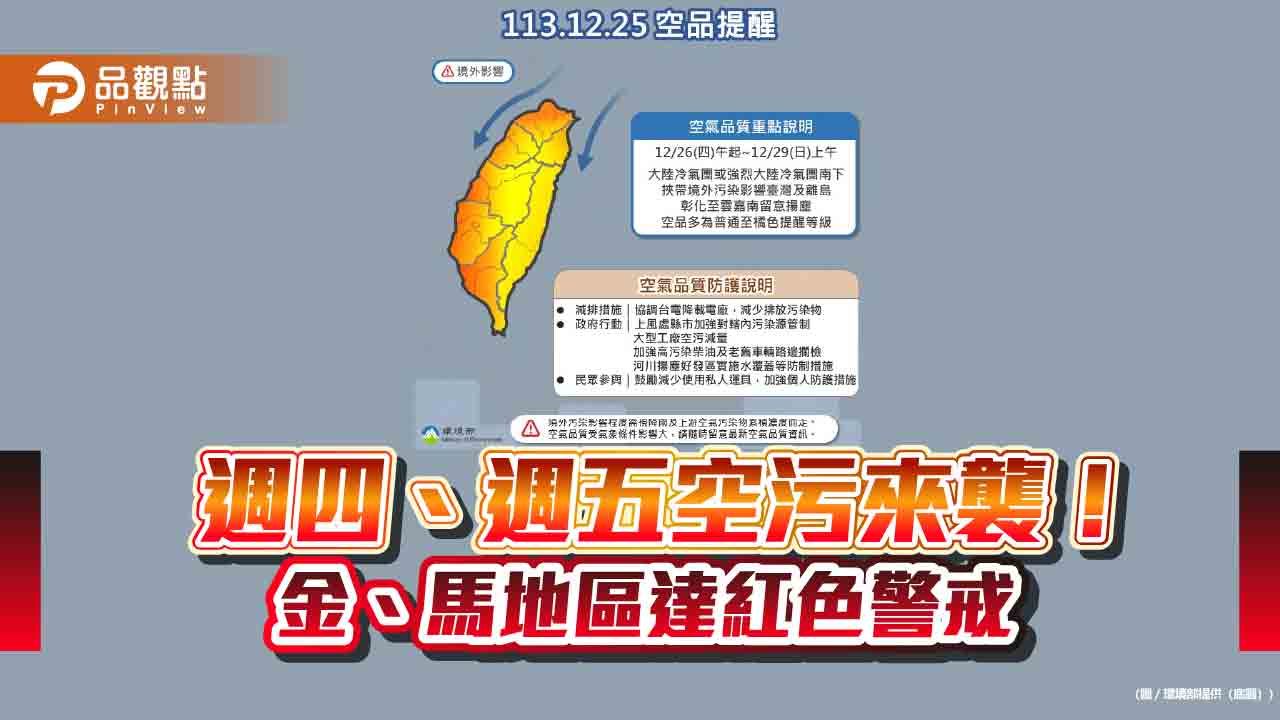 週四、週五空污來襲! 金、馬地區達紅色警戒