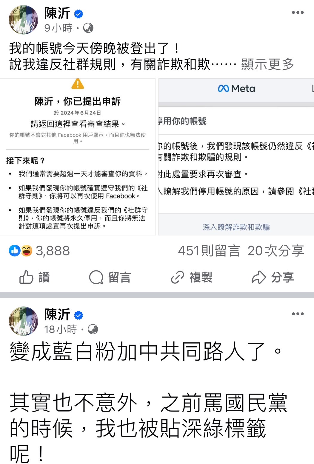 違反社群規則被停權 陳沂批「莫須有」!網譏:得罪方丈還想走?