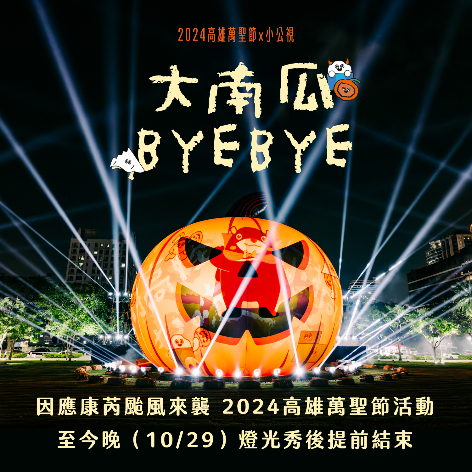 2024高雄萬聖節原訂11月3日結束,因應康芮颱風來襲,考量到活動中22公尺高的大南瓜高度與周遭電力設備影響,以及凹子底公園周圍建築與用路人安全,今日(29日)為展出的最後一天。