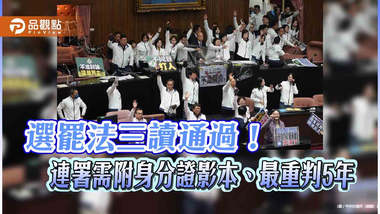 選罷法三讀通過!連署需附身分證影本、最重判5年